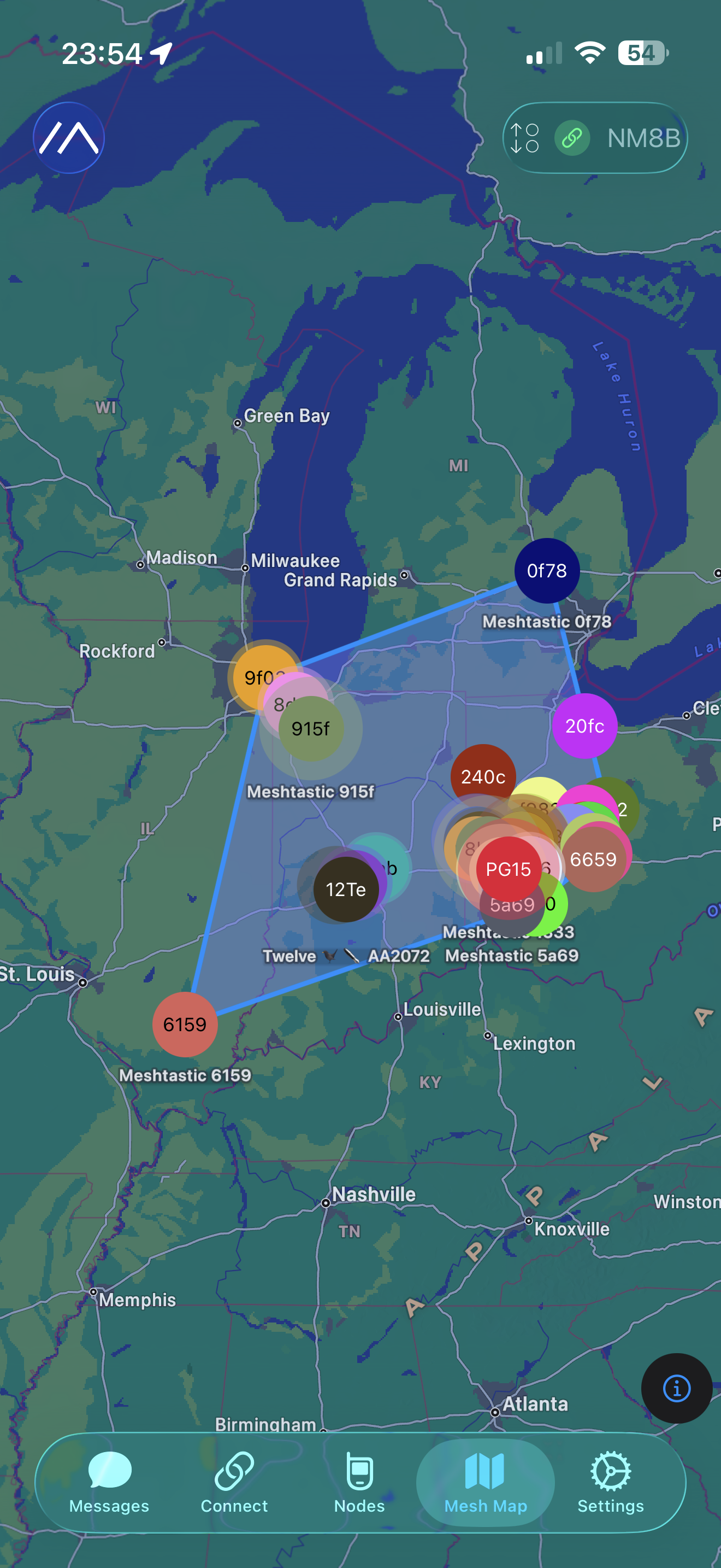 Friday I received two Heltec V4’s and flashed them for MeshTastic, I was completely surprised with the results. There are a lot more nodes than I expected. Within minutes I was seeing nodes populate. I moved one the second story and it only got better. I seem to have coverage everywhere I went so far, tomorrow we will see how it is at work. I have yet to see anyone else on MeshCore.
